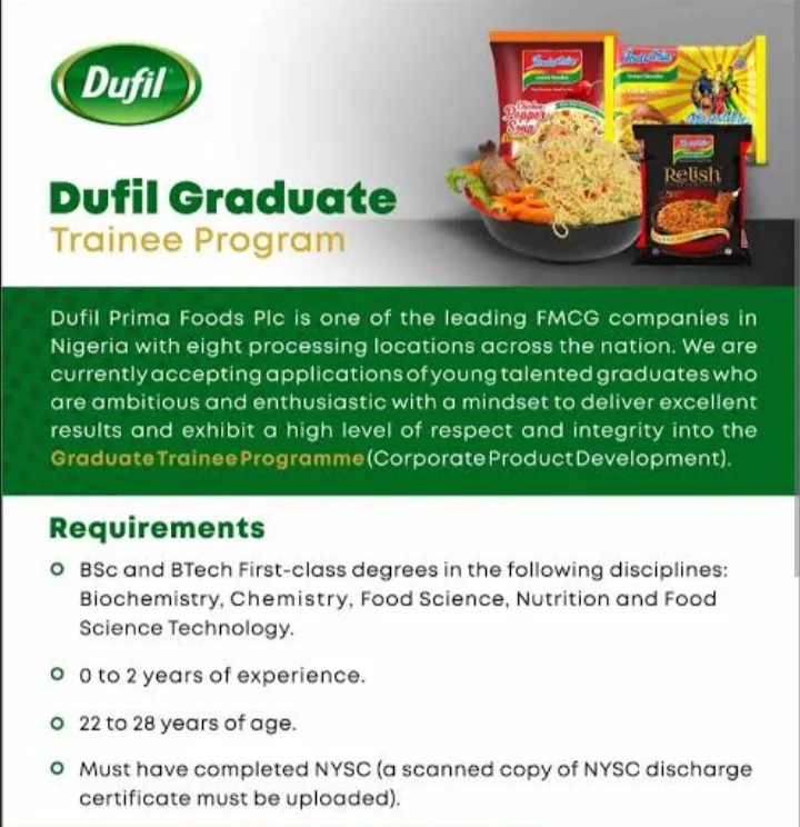 Are you a bold, driven, and ambitious recent graduate seeking a transformational career path in one of Nigeria’s biggest FMCG companies? The Dufil Prima Graduate Trainee Program is your opportunity of a lifetime. Just announced, this elite development initiative is designed to empower young professionals to become future business leaders within Dufil Prima Foods Plc – the powerhouse behind the Indomie brand.